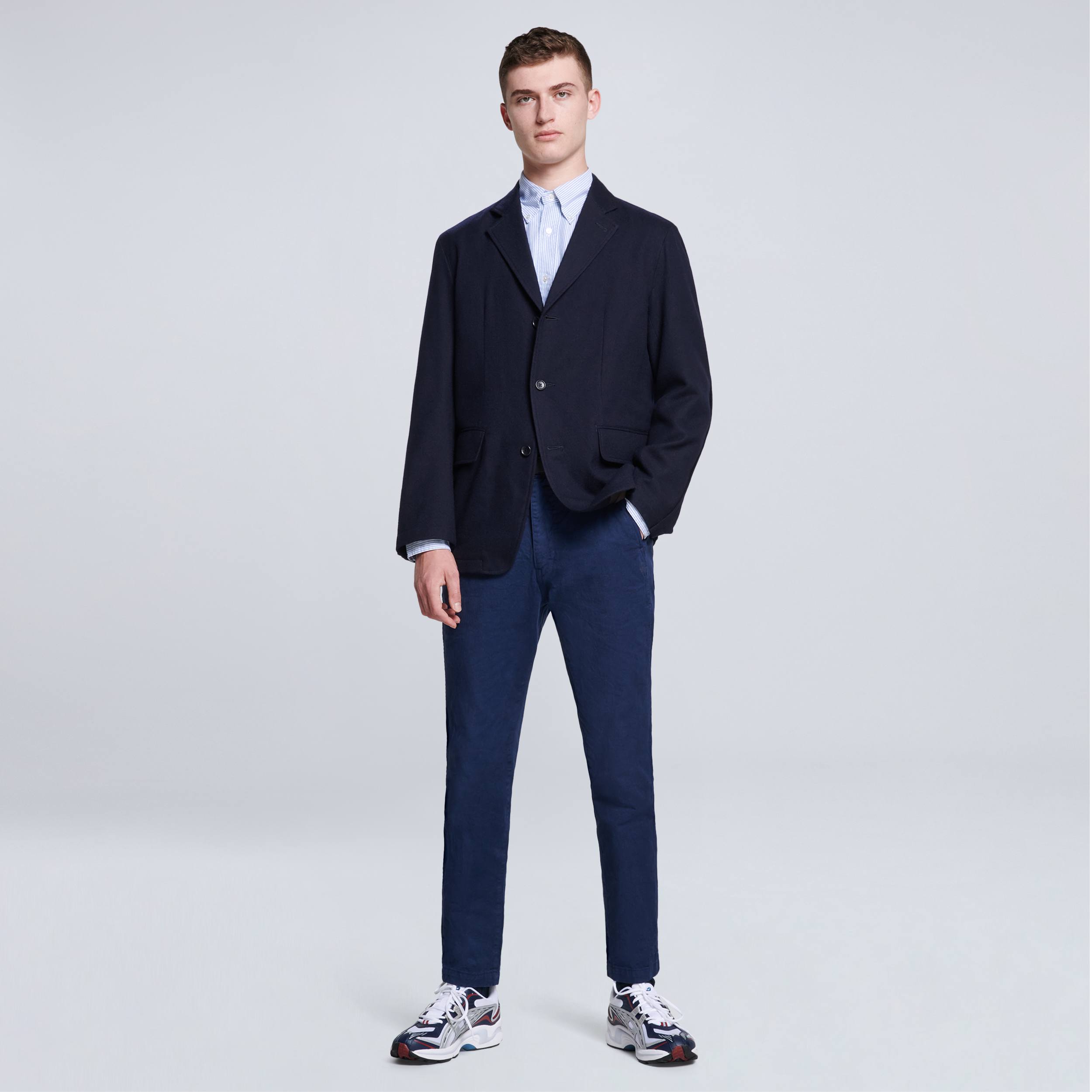 Un look élégant et décontracté qui mix les pièces les plus iconiques chez PHM. La chemise Brooks Brothers x PHM en edition limitée, le pantalon en coton et lin, à taille élastique et le blazer en flanelle de laine de chez Sage de Crêt. Les baskets Asics complète la silhouette moderne et épurée.